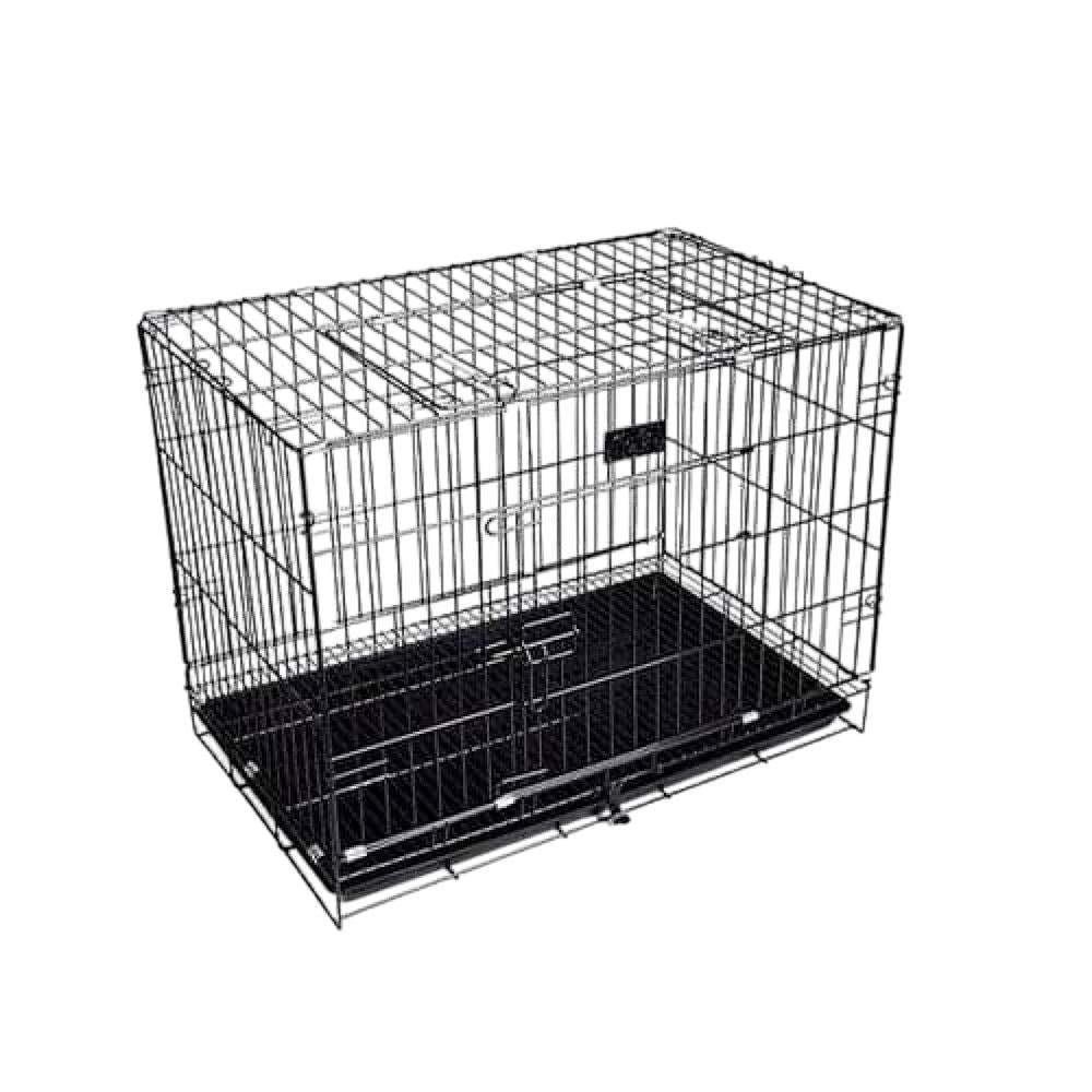 قفص قطط وكلاب حديد قابل للطي - وسط لون أسود