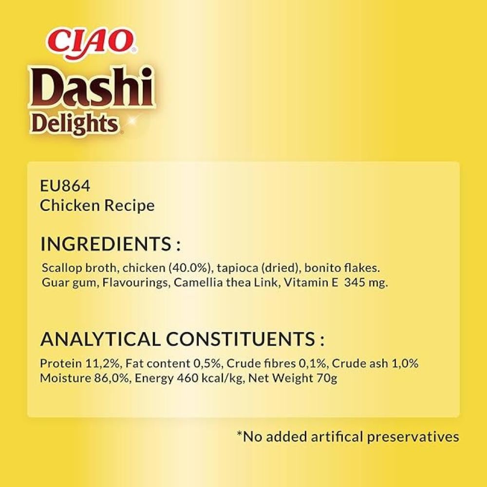 يحتوي هذا المنتج على قطع طرية من الدجاج الحقيقي، مطهية بعناية في مرق داشي التقليدي
