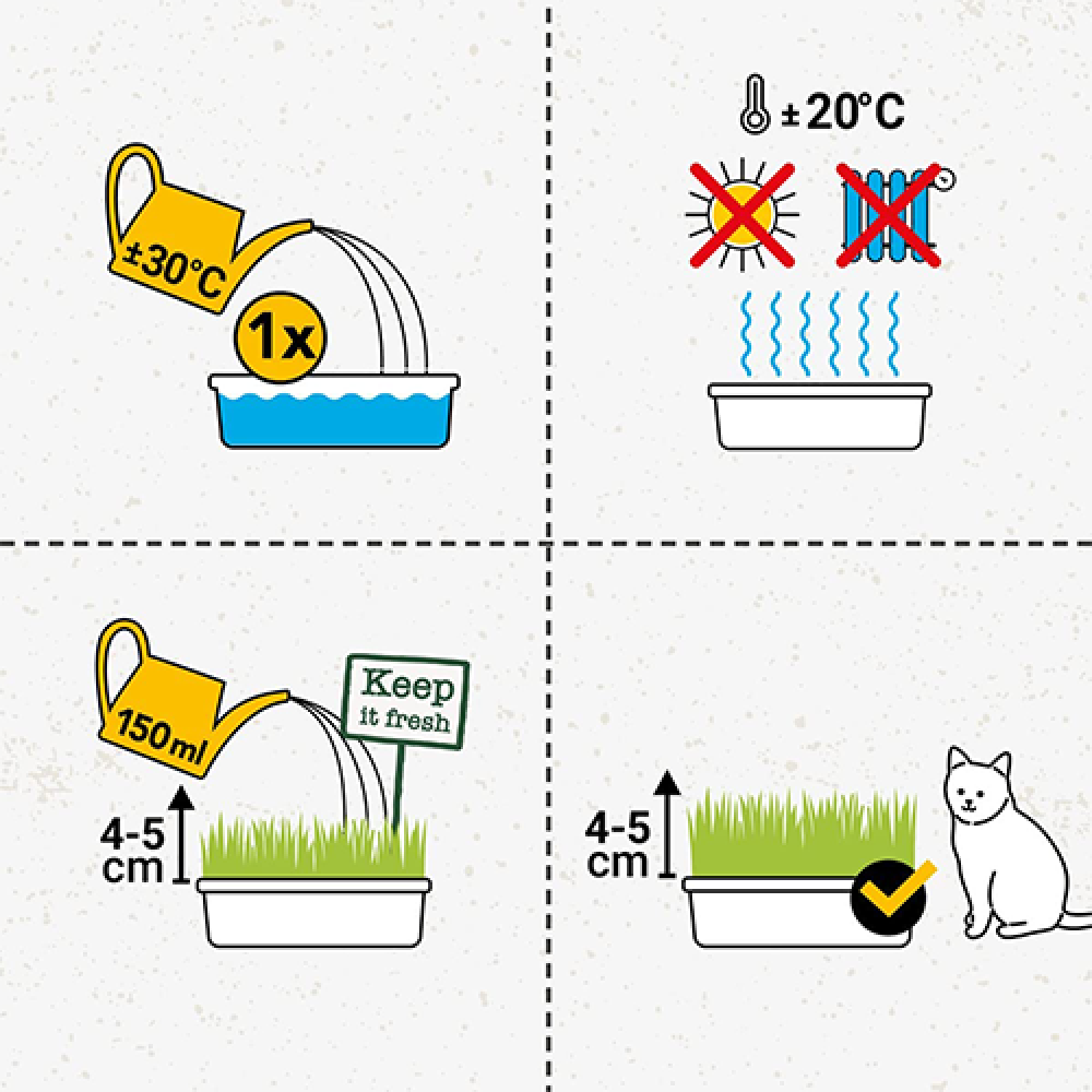 هذا المنتج المبتكر يوفر لقطتك عشباً طازجاً وشهياً يمكنها تناوله بانتظام للمساعدة في الهضم وتنظيف الجهاز الهضمي.